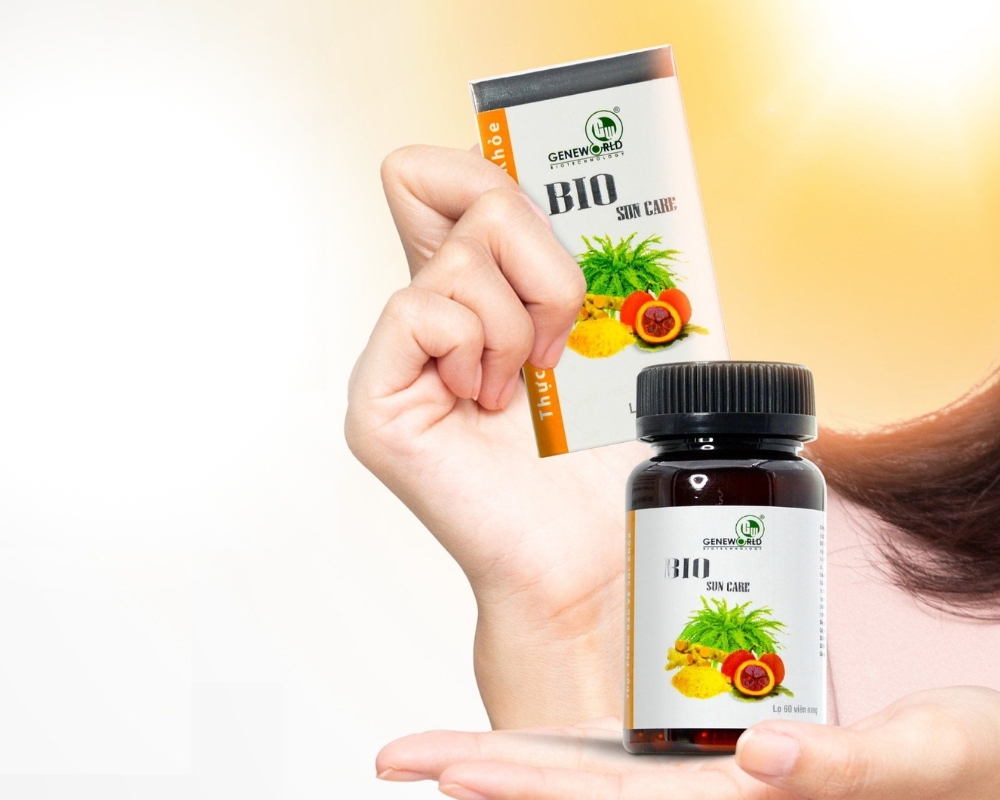 Viên uống chống nắng Bio Sun Care: Tổng hòa thành phần chống oxy hóa mạnh giúp trung hòa các gốc tự do, ức chế sản sinh melanin, giảm thiểu tác hại của tia gây ra trên da. Kết hợp với thoa kem chống nắng để tối ưu hiệu quả bảo vệ.