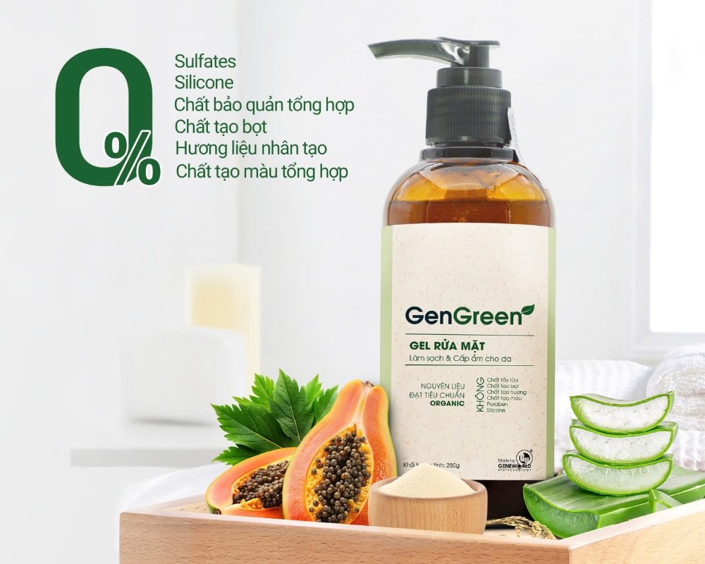 - Bước 1: Làm sạch với sữa rửa mặt dạng gel Cleansing Gel giúp loại bỏ bụi bẩn, bã nhờn, cân bằng pH da. Sản phẩm được chiết xuất từ bảng thành phần hữu cơ đạt chứng nhận Organic EU và Organic USDA-NOP, kết hợp với công thức 6 KHÔNG (Không chứa Silicone, không chứa Sulfates, không chất bảo quản, không hương liệu nhân tạo, không chứa chất tạo màu, không chất tạo bọt) an toàn.