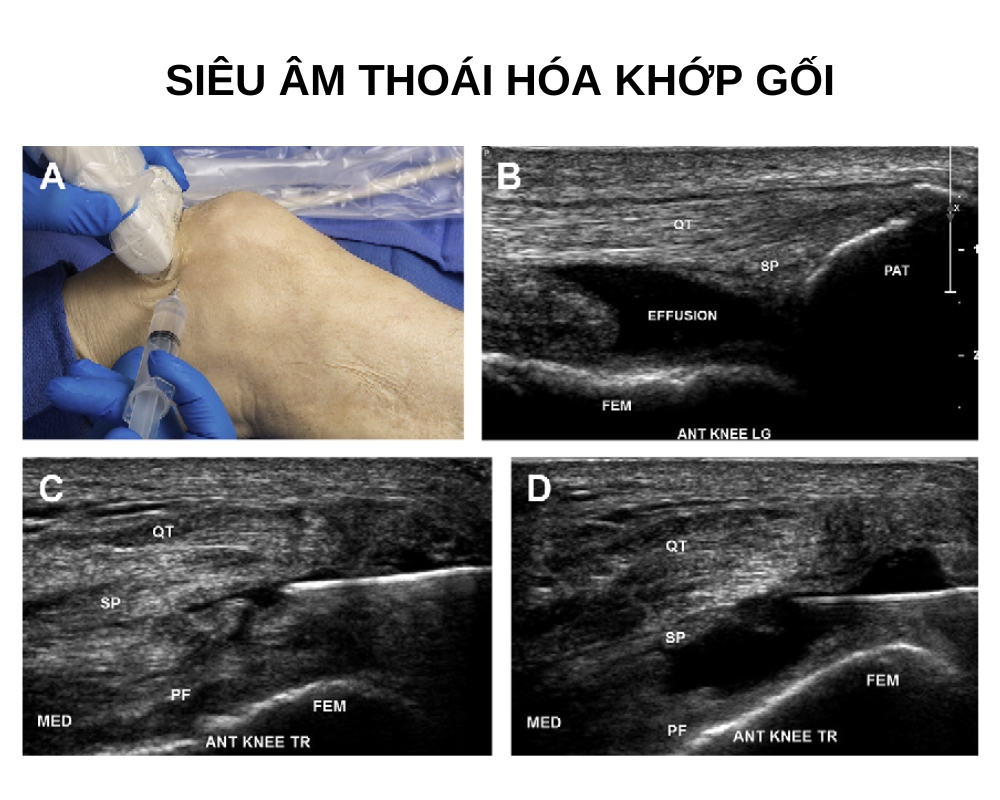 - Hình ảnh siêu âm: Cho phép xác định khoảng cách giữa các khớp, cấu trúc mềm và hoạt dịch quanh khớp gối. Trên hình ảnh siêu âm, còn có thể quan sát các biểu hiện như viêm mô mềm, sưng tấy và dịch trong túi bên trong.