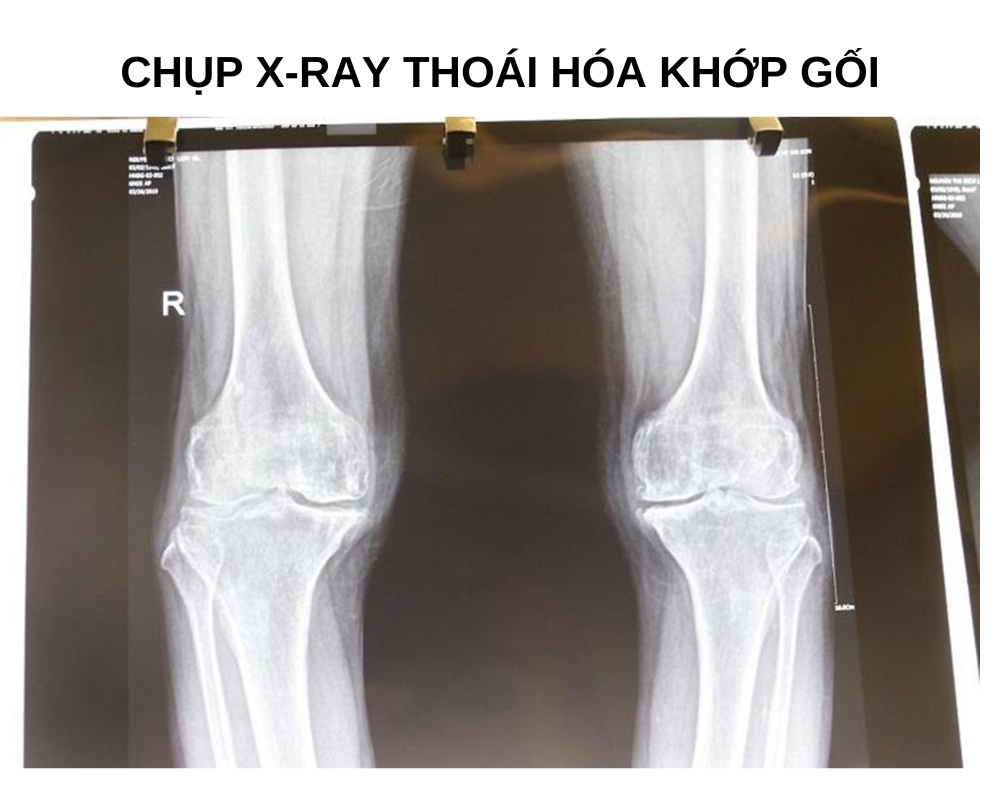 - Chụp X-Quang: X-Quang là công cụ phổ biến để phát hiện bệnh, hình ảnh thoái hóa khớp gối được thể hiện qua kết quả X-Quang