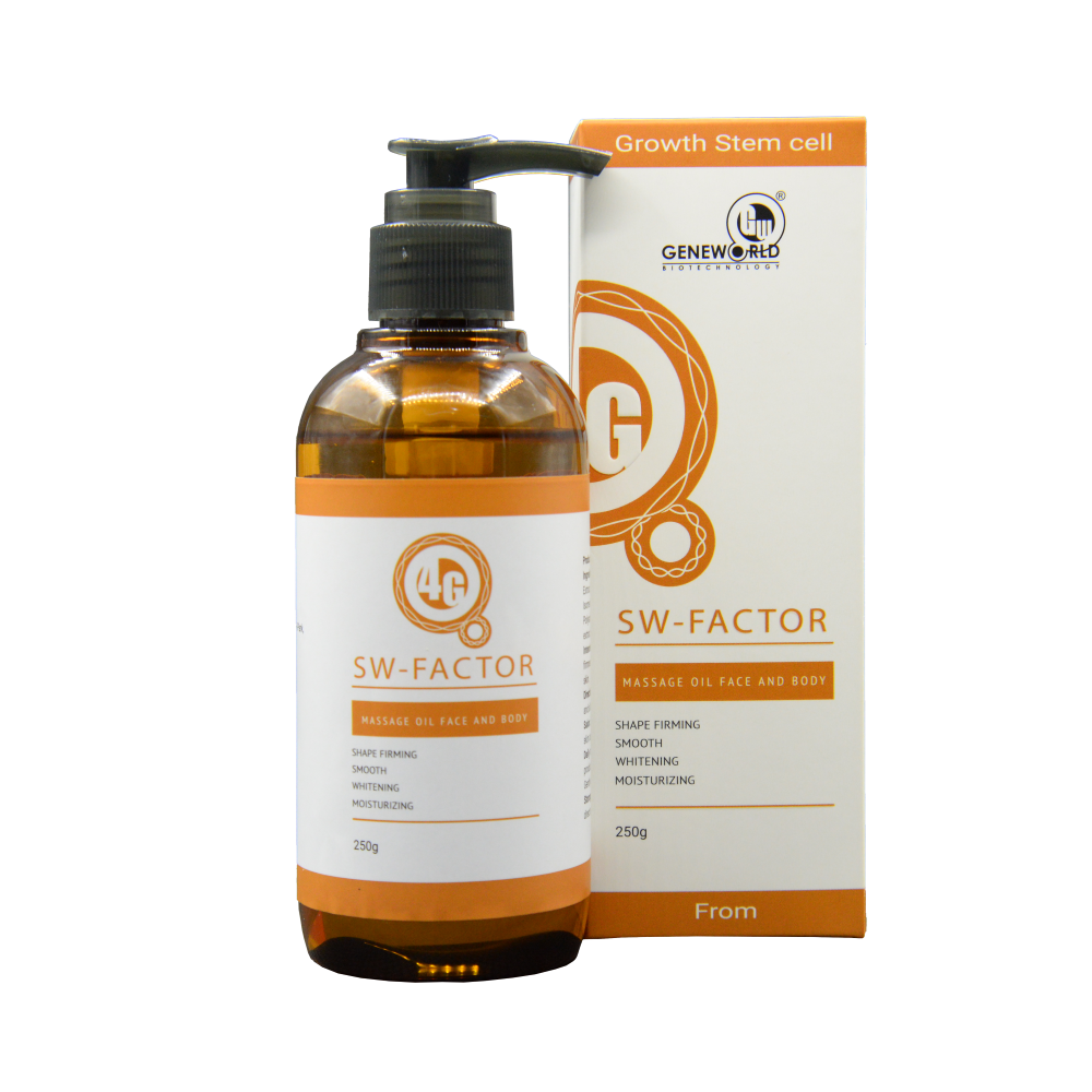 SW-Factor Massage Face And Body là dòng sản phẩm dầu massage mặt và toàn thân của Geneworld. Sản phẩm có tác dụng làm giảm tình trạng khô da, nuôi dưỡng da ẩm mịn, ngừa lão hóa da, dưỡng sáng và giảm thiểu rạn da hiệu quả. SW-Factor Massage Face And Body với thành phần lành tính, được thiết kế an toàn, dùng massage được cho mọi loại da, mọi đối tượng, kể cả mẹ bầu và em bé.