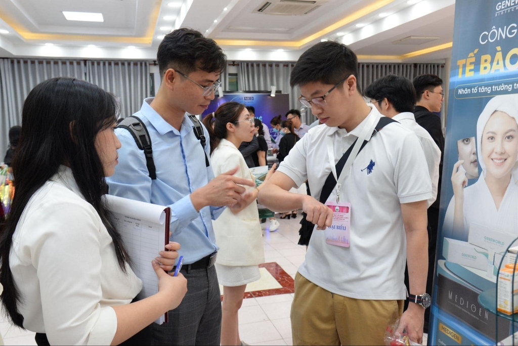 Đến với Chương trình đào tạo liên tục kì 2/2023, ngoài việc tham dự các Phiên Báo cáo để cập nhật kiến thức Laser chuyên sâu từ các Bác sĩ, Geneworld còn có gian hàng trưng bày sản phẩm. Tại gian hàng, Geneworld đã đem đến các sản phẩm chăm sóc da tiêu biểu, giúp làm dịu da, phục hồi thương tổn nhanh chóng sau phương pháp xâm lấn như Laser. Đồng thời, những công nghệ sinh học tân tiến ứng dụng trong làm đẹp cũng được Geneworld còn giới thiệu tới khách tham dự. Với sự đầu tư chỉn chu cả về chất lượng sản phẩm, lẫn kỹ thuật chuyên môn cùng kỹ năng chăm sóc da chuẩn Y khoa, gian hàng của Geneworld đã thu hút được đông đảo Quý khách hàng tham quan trải nghiệm và trở thành một trong những gian hàng hoạt động sôi nổi nhất chương trình.