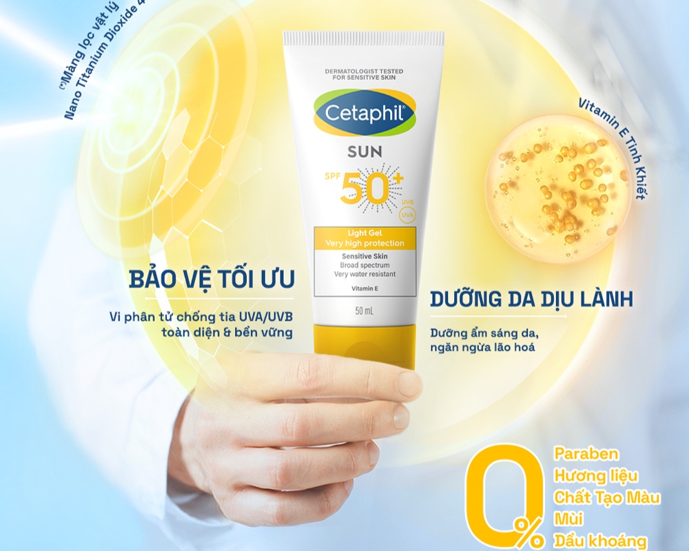 Sun SPF 50+ Light Gel là sản phẩm kem chống nắng đến từ thương hiệu Cetaphil sử dụng cho da mẹ bầu, da nhạy cảm. Sản phẩm là sự kết hợp giữa màng lọc chống nắng phổ rộng bảo vệ da tối ưu khỏi tia UVA, UVB, kết hợp vitamin E dưỡng ẩm, làm dịu và ngăn lão hóa da.