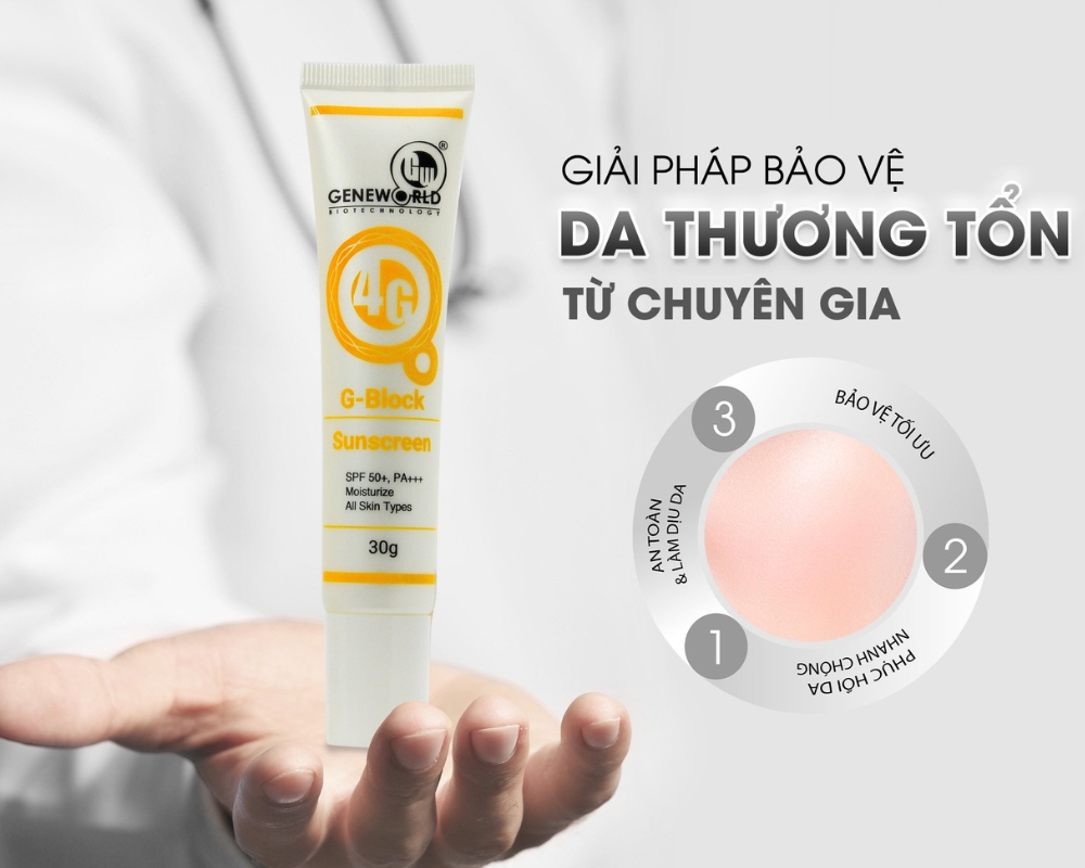 G - Block là kem chống nắng vật lý được Geneworld nghiên cứu và sản xuất dành riêng cho da nhạy cảm, da sau xâm lấn, cần che chắn kỹ. Đặt tiêu chí an toàn, lành tính mà vẫn bảo vệ hiệu quả lên hàng đầu, kem chống nắng G - Block được các chuyên gia khuyên chọn bởi sự lành tính, không gây kích ứng, không làm tổn thương da non, bảo vệ da tối ưu và tăng tốc độ phục hồi da nhanh hơn.