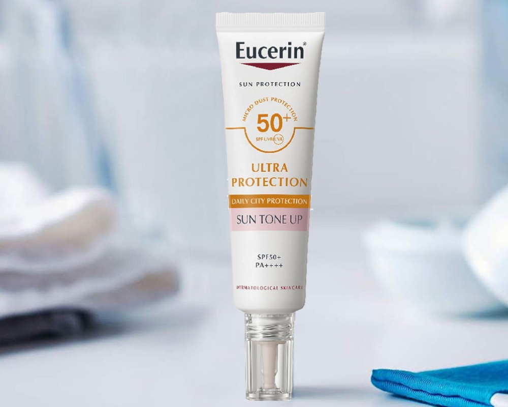 Cuối cùng, không thể không kể đến kem chống nắng nâng tông Eucerin Ultra Protection Sun Tone Up SPF50+ PA++++ của thương hiệu dược mỹ phẩm Đức - Eucerin. Sản phẩm là sự kết hợp của bộ lọc cải tiến, bảo vệ da nhiều giờ trước ánh nắng cùng khả năng hiệu chỉnh nền da, dưỡng trắng tức thì, cho hiệu quả nâng tone tự nhiên, phù hợp với nền da người Châu Á.