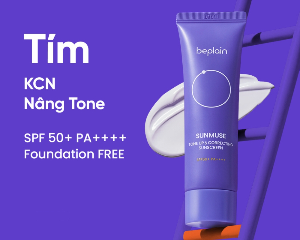 Beplain Sunmuse Tone-Up & Correcting Sunscreen là kem chống nắng nâng tone sở hữu cơ chế chống nắng vật lý, phản xạ lại tia UV gây hại da. Công thức pha màu tím trung hòa tông đỏ, vàng giúp nâng tông tự nhiên, làm đều màu da. Dòng sản phẩm có nhiều dòng với các màu cụ thể (tím đậm, tím nhạt, xanh dương, xanh lá) với những nhu cầu chăm da khác nhau. Theo đó, trước nhu cầu bảo vệ và nâng tone tự nhiên, bạn có thể cân nhắc tuýp kem màu tím đậm.