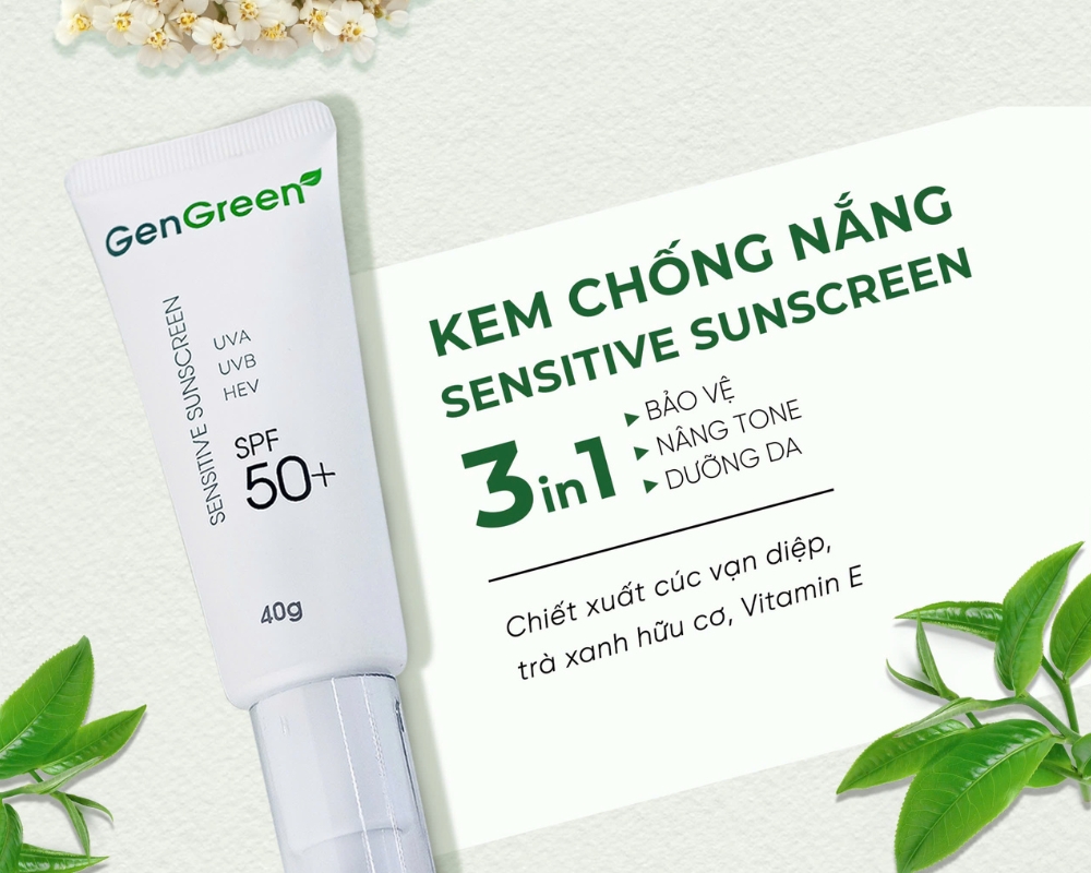 Sensitive Sunscreen là kem chống nắng nâng tone cho da nhạy cảm được Geneworld nghiên cứu và ra mắt thị trường vào tháng 10/2024. Sản phẩm là sự kết hợp giữa nền tảng công nghệ sinh học hiện đại cùng bảng thành phần lành tính, mang tới hiệu quả tích hợp 3IN1: BẢO VỆ VƯỢT TRỘI + NÂNG TONE TỰ NHIÊN + DƯỠNG DA SÁNG KHỎE.