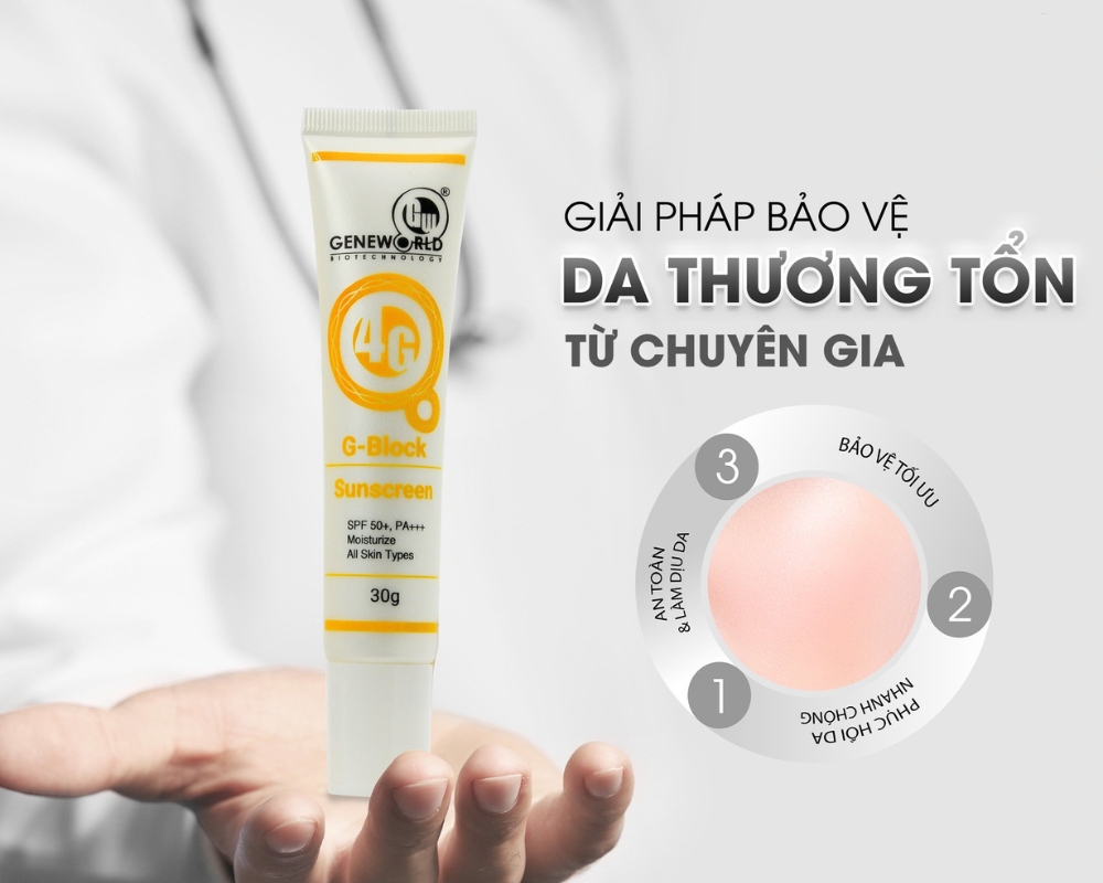 Là sản phẩm made in Việt Nam, được nghiên cứu và sản xuất ứng dụng công nghệ sinh học, kem chống nắng vật lý G - Block có tác dụng phản xạ lại tia UV ưu việt, bảo vệ da vượt trội suốt nhiều giờ đồng hồ. Đồng thời, tích hợp thêm hiệu quả dưỡng ẩm, phục hồi da cháy nắng, thương tổn hiệu quả. Sản phẩm phù hợp với mọi loại da, kể cả làn da dễ bị kích ứng.