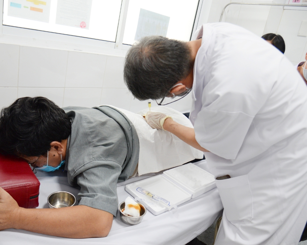 Bước 4. Bác sĩ tiêm 3 - 6ml PRP vừa tách được vào mỗi một khớp gối thoái hóa.