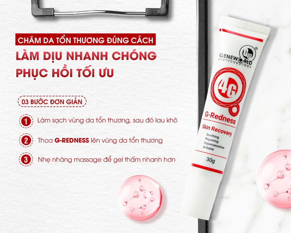 Bên cạnh gel kháng viêm G-Redness, Geneworld còn gợi ý thêm một vài sản phẩm trong bộ sản phẩm chăm sóc & phục hồi da bao gồm: