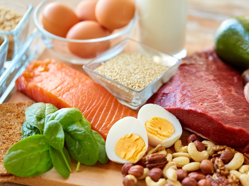 - Bổ sung đa dạng các loại thực phẩm, chú trọng thực phẩm bổ dưỡng, giàu đạm từ các loại thịt đỏ, trứng, cá, rau xanh lá…