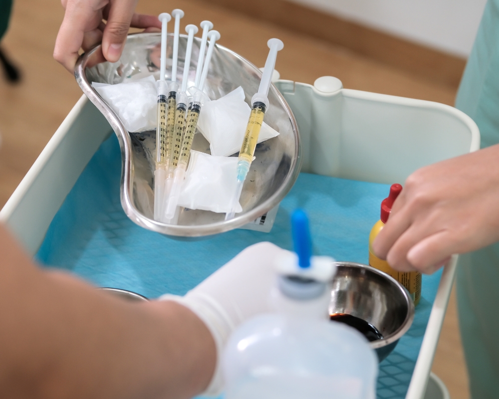 Bước 3. Hoạt hóa: Sử dụng Cacl2 để hoạt hóa lượng PRP và PPP vừa thu được (Cacl2 được định lượng sẵn trong ống) nhằm giải phóng các yếu tố tăng trưởng, phát huy hiệu quả tiêm.
