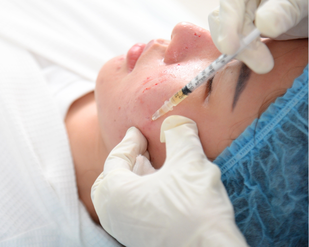 Làm sạch da mặt để loại bỏ bụi bẩn, dầu thừa, sau đó sát khuẩn với Povidine và nước muối sinh lý. Có thể bôi kem ủ tê để giảm đau trong quá trình tiêm nếu cần (thực hiện song song với quy trình tách chiết PRP).