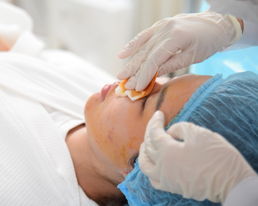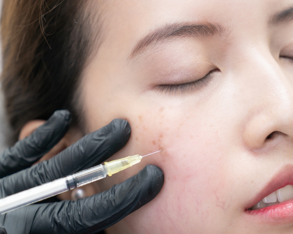 Bước 4: Làm sạch và sát khuẩn vùng da bị nám. Có thể thoa kem gây tê hoặc tiêm tê nhẹ để giảm cảm giác đau trong quá trình tiêm.