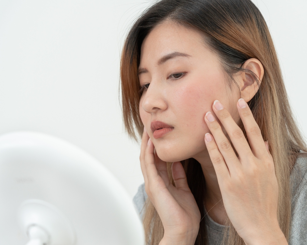 - Da mỏng yếu, có thể lộ rõ mao mạch