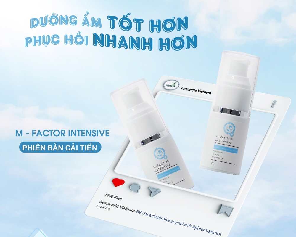 Cuối cùng, không thể không nhắc tới serum dưỡng ẩm đa tầng chuyên sâu M - Factor Intensive hoạt tính cao, vừa dưỡng ẩm, vừa giúp tăng sinh và phục hồi da hiệu quả. Với bảng thành phần gồm Spirulina Amino Acid, Hyaluronic Acid 2 cấp độ phân tử to - nhỏ, Glycogen, Glycerin, Trehalose mang tới hiệu quả phục hồi cho da thương tổn do cháy nắng, sau điều trị công nghệ xâm lấn.