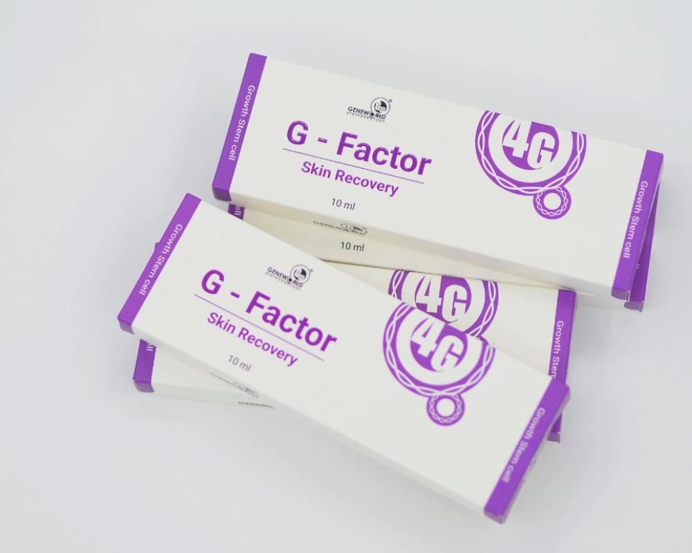 G - Factor là tinh chất phục hồi da nằm trong bộ sản phẩm phục hồi và chăm sóc da thương tổn sau xâm lấn của Geneworld. G - Factor được chiết xuất từ bảng thành phần lành tính, phục hồi hiệu quả, giúp thúc đẩy tăng sinh có kiểm soát tế bào gốc da, phục hồi da thương tổn nhanh hơn, đồng thời hỗ trợ giúp da trẻ hóa, căng mịn, săn chắc.
