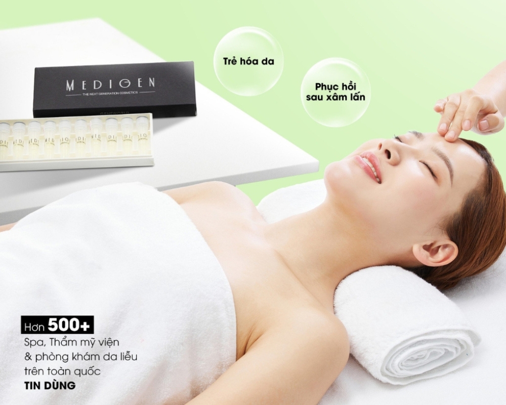 Medigen là tế bào gốc bôi mặt có chứa bảng thành phần phục hồi chuyên sâu bao gồm dịch chiết tế bào gốc nhung hươu sao, Collagen cá ngừ vây vàng, Hyaluronic Acid, alpha-Arbutin, Kojic Acid… mang tới hiệu quả tái sinh mô vượt trội, kích thích sản sinh Collagen, Elastin, tăng tổng hợp chất nền ngoại bào… nhờ vậy da thương tổn được phục hồi nhanh chóng, hiệu quả, cải thiện nền da khỏe đẹp, trẻ hóa và ngăn ngừa lão hóa da sớm.