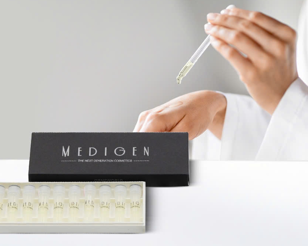 Medigen là sản phẩm của thương hiệu Geneworld - một thương hiệu có hơn 15 năm kinh nghiệm trong việc nghiên cứu và ứng dụng công nghệ tế bào gốc vào sản xuất các sản phẩm chăm sóc da chuyên sâu. Sản phẩm là sự kết hợp của công nghệ dẫn đầu cùng công thức độc quyền, tạo nên hiệu quả ưu việt, được các Spa, Clinic, phòng khám da ưa chuộng và tin chọn.
