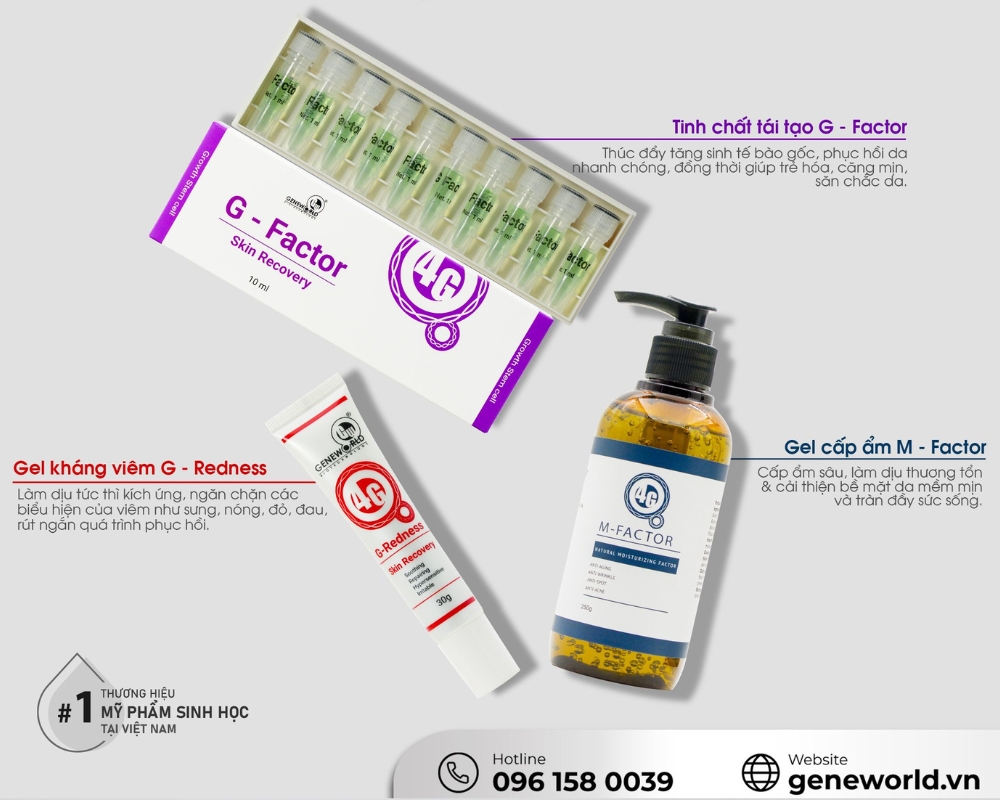- Tinh chất G - Factor: Giàu dưỡng chất thúc đẩy tăng sinh có kiểm soát tế bào gốc da, giúp quá trình phục hồi da sau xâm lấn diễn ra nhanh hơn, hỗ trợ trẻ hóa làn da.
