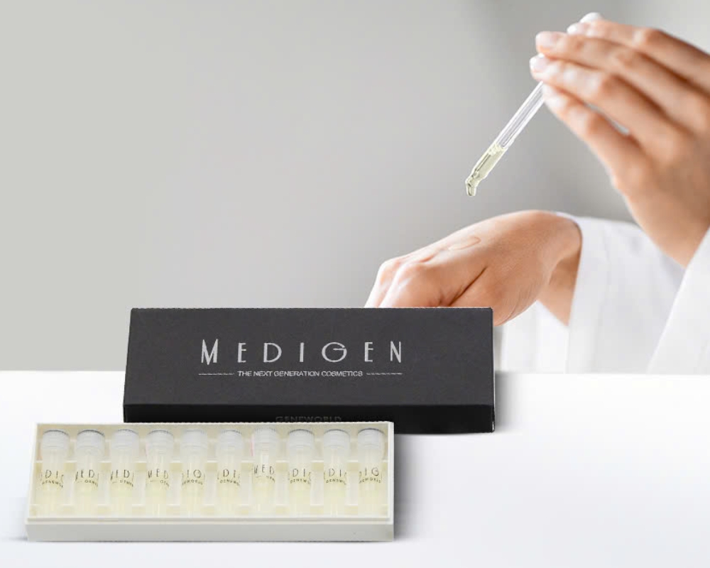Medigen ứng dụng công nghệ nuôi cấy tế bào gốc nhung hươu kết hợp cùng công thức ưu việt với bảng thành phần gồm dịch chiết tế bào gốc nhung hươu, Collagen cá ngừ vây vàng, Hyaluronic Acid, Kojic Acid, alpha-Arbutin… kích thích da tái tạo, tăng sản sinh chất nền ngoại bào, nhờ vậy da được phục hồi nhanh chóng, cải thiện nền da khỏe, trẻ hóa và ngăn ngừa lão hóa da từ gốc.