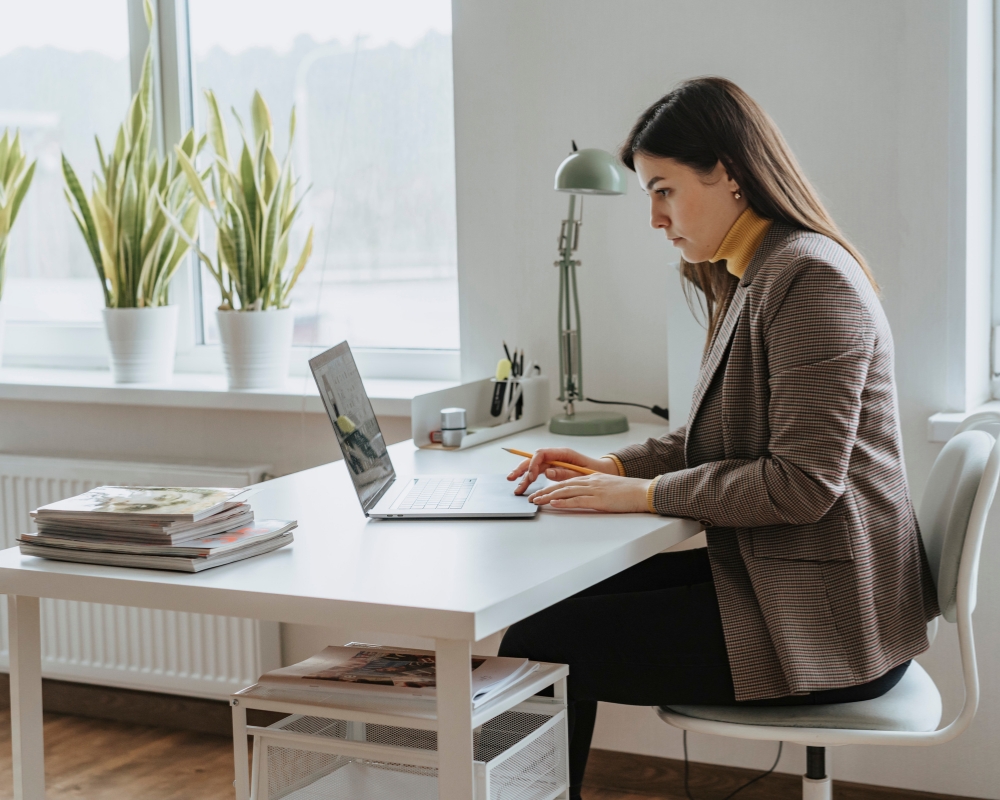 - Điều chỉnh dáng ngồi, cẳng tay song song với nền nhà, giữ vai bằng, lưng thẳng, mắt cách màn hình 55-60 cm, nhìn xuống 1 góc 10 độ, tránh nhìn quá cao hoặc quá thấp.
