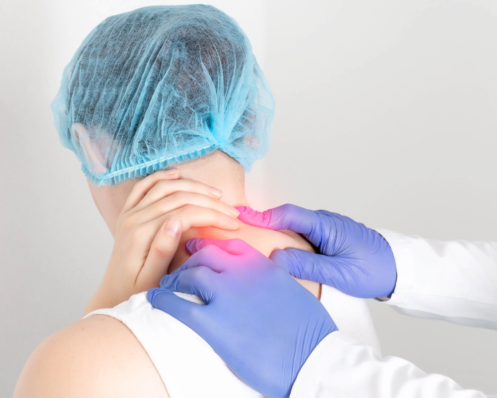 - Cứng cổ: Sau một đêm ngủ dậy, người bệnh bị cứng cổ vào sáng hôm sau. Việc xoay, cúi cổ gặp khó khăn kèm theo ê ẩm vùng gáy.