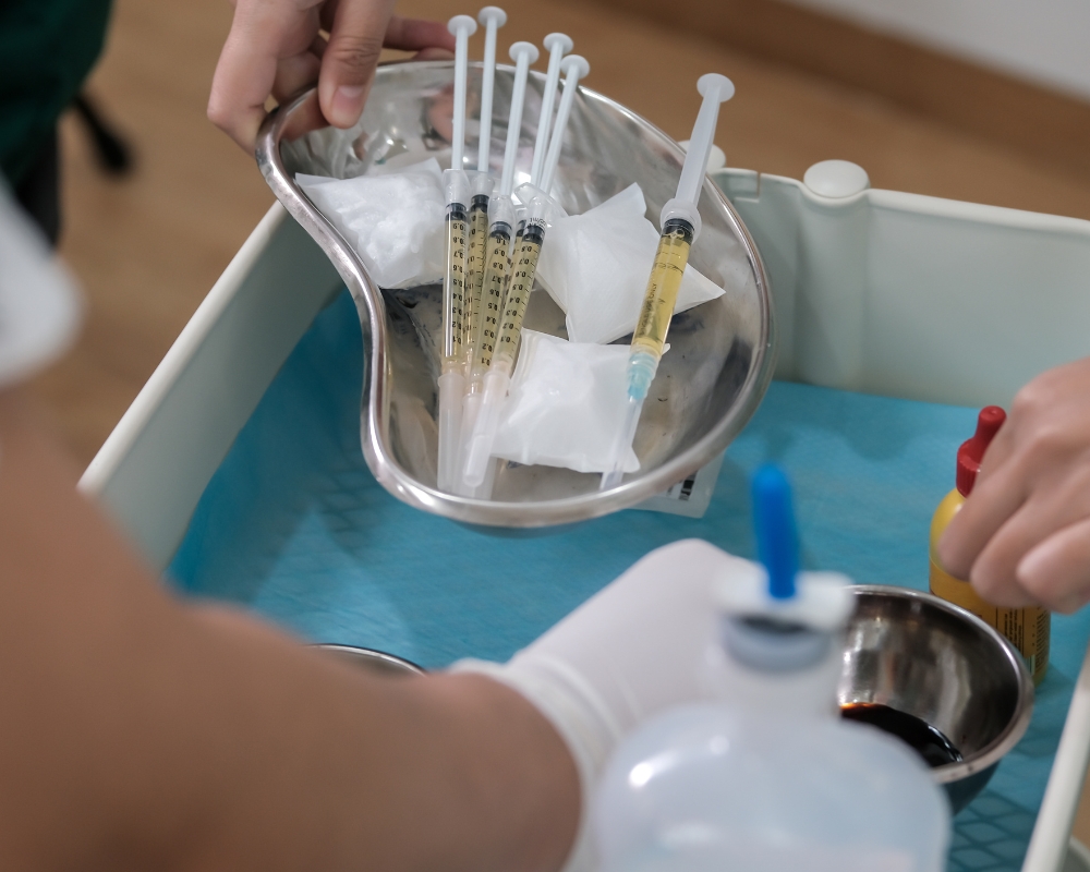 - Ủ tê và sát khuẩn: Ủ tê (nếu cần). Sát trùng vùng da được tiêm để tránh nhiễm trùng sau tiêm.