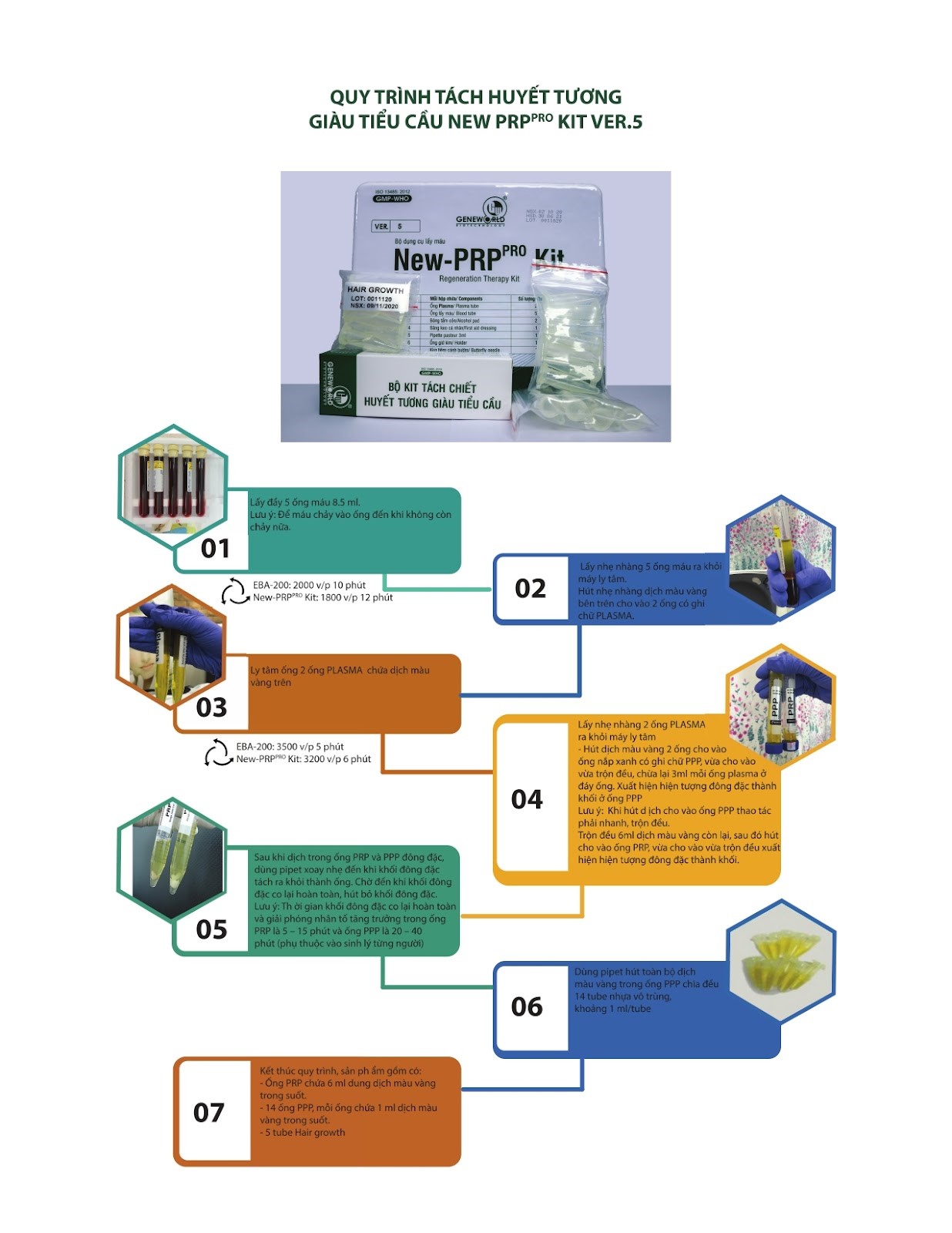 Dẫn đầu công nghệ tách chiết huyết tương giàu tiểu cầu tại Việt Nam, ngay từ những năm đầu thành lập, Geneworld đã bắt tay vào nghiên cứu và sản xuất bộ KIT tách chiết PRP. Năm 2013, Bộ KIT - NEW PRP PRO KIT của Geneworld trở thành bộ KIT được Bộ Y tế cấp phép lưu hành lần đầu tiên và duy nhất tại Việt Nam (tính tới thời điểm hiện tại). Bộ KIT đáp ứng tiêu chuẩn GMP-FDA và được sản xuất và đóng gói trong điều kiện vô trùng tuyệt đối, được định lượng sẵn chất chống đông, chất hoạt hóa, làm giàu 6-8 lần huyết tương giàu tiểu cầu và hoạt hóa tối ưu các yếu tố tăng trưởng trong đó.