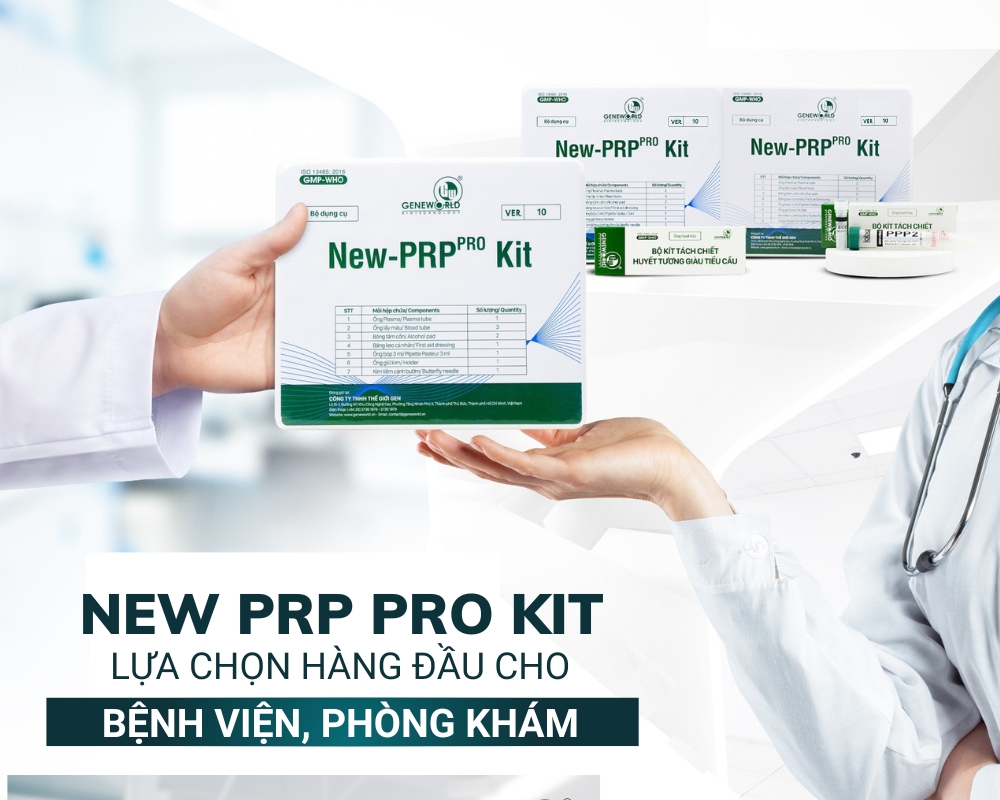 Nhằm tối ưu lượng tiểu cầu thu được & kích hoạt giải phóng yếu tố tăng trưởng, sau thời gian dài nghiên cứu, năm 2013, Geneworld đã sản xuất thành công dụng cụ tách chiết NEW PRP PRO KIT đạt chứng nhận ISO 13485:2016, GMP WHO, GMP FDA và được cấp phép lưu hành bởi Bộ Y tế.